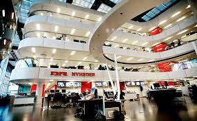 Ved rundvisningen får vi muligheden for at få et indblik i, hvordan Danmarks største mediehus fungerer.