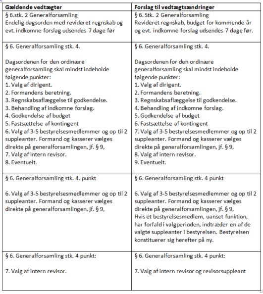 Bestyrelsen foreslår følgende ændringer til vedtægterne